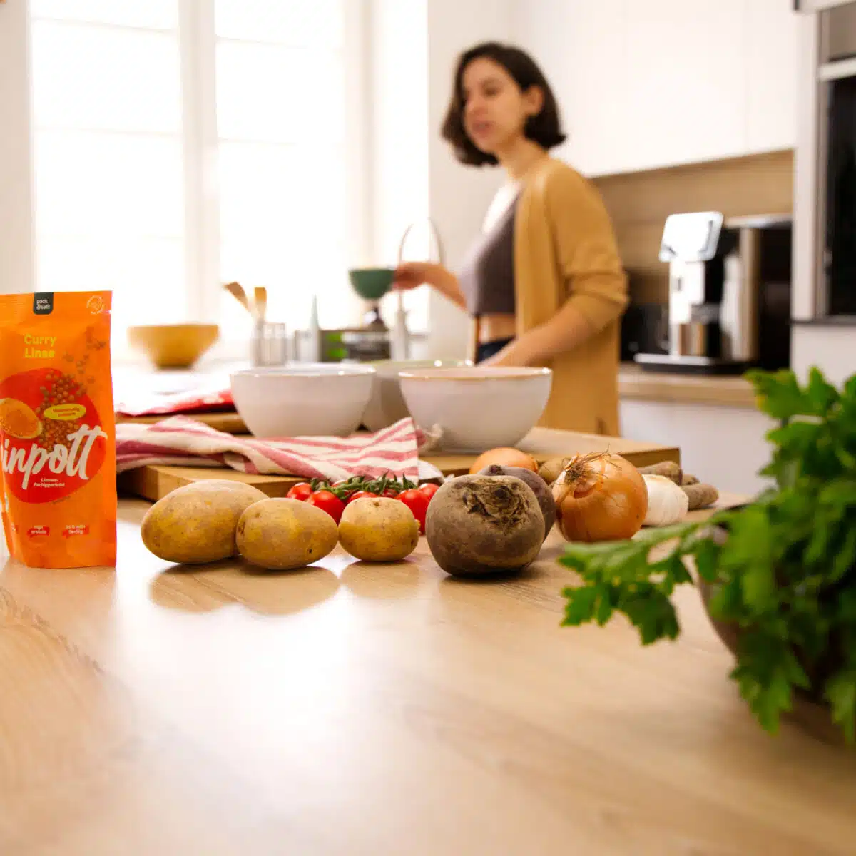 Bio, vegan, voller Geschmack – und das ohne Zusatzstoffe. Anders als klassische Fertiggerichte steckt im einpott nur drin, was wirklich gut für dich ist: Linsen, Dinkel, Erbsenprotein, Gemüse, Kräuter – alles 100 % bio, rein pflanzlich und komplett ohne Konservierungsstoffe oder künstliche Aromen. Jede Sorte ist fein gewürzt, überraschend lecker und macht lange satt – ganz ohne Foodkoma. Ob im Homeoffice, unterwegs oder zwischen zwei Calls: Mit dem einpott isst du bewusst, auch wenn’s schnell gehen muss.